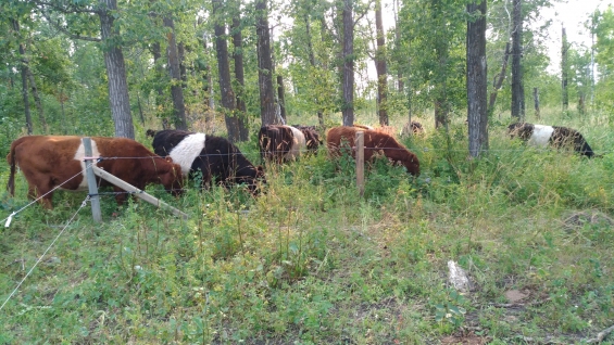 Our cattle forage for grass and forbs year round. In winter when forage is limited we feed supplemental hay from our own haylands. Chemical free! We use stress free management and low pressure handling systems. In fact, our cattle follow us to new pastures instead of being herded! We limit the number of cattle on our land to ensure sustainability.